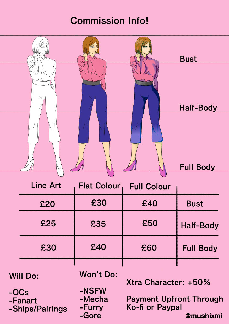 My Art Commissions are finally open! Here you'll find all the information you need to commission me. If you have any questions that I have not answered here, feel free to DM me @mushixmi on Twitter and Instagram, or email me at [email protected].